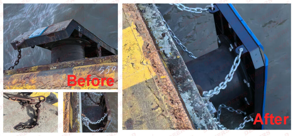 At the same time, several fender units were severely worn and no longer serviceable, requiring complete replacement. For these locations, full cell fender systems were supplied to ensure reliable performance and long-term durability.